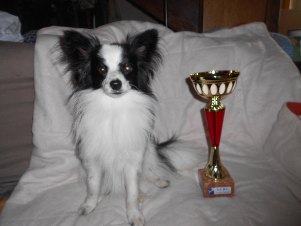 Exc crâne, exc rapport crâne.chanfrein - B couleur yeux, problème oeil gauche - Exc articulé, Exc forme des côtes et ossature - exc qualité condition et fourrure - queue bien placée et bien portée - marche bien